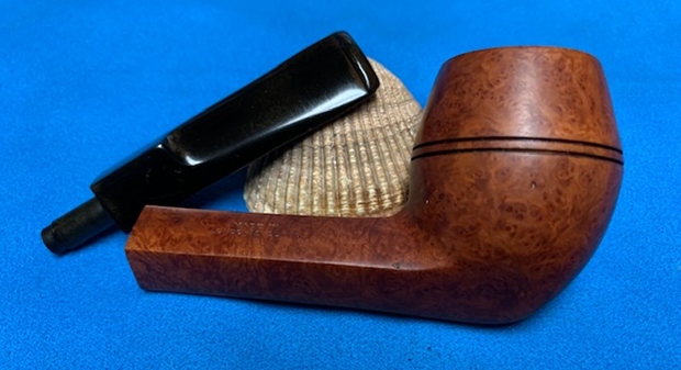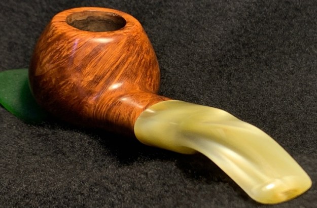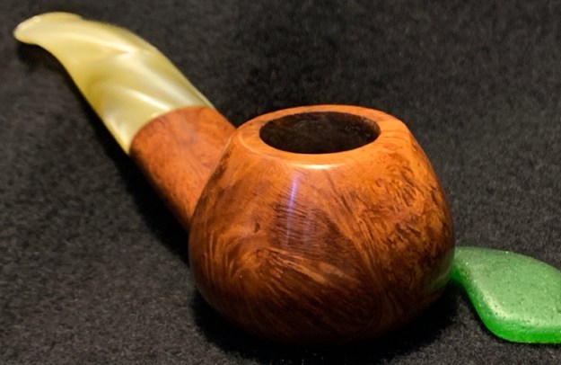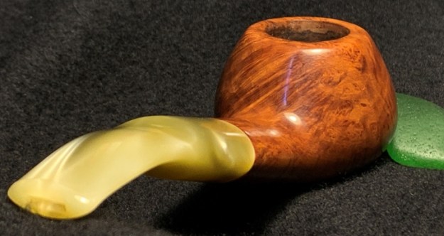 The grain on this Made in London England Diplomat is superb. I’m extremely pleased with the repair to the acrylic stem. It is now beautifully seated in the mortise, straight balanced and snugly secure. The waves in the acrylic pop and the Diplomat shape, with the broad heal, makes for a very nice feel in the palm. Andy from Maryland commissioned this English Diplomat and will have the first opportunity to acquire him in The Pipe Steward Store. This pipe benefits the Daughters of Bulgaria. Thanks for joining me!
