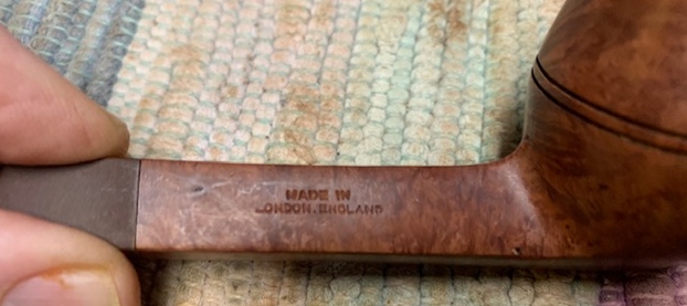 The only markings are found on the lower side of the oval shank, MADE IN LONDON [over] ENGLAND. Below the COM is what I assume is a shape number, ‘140’. Not a lot to go on to determine origins.