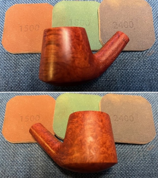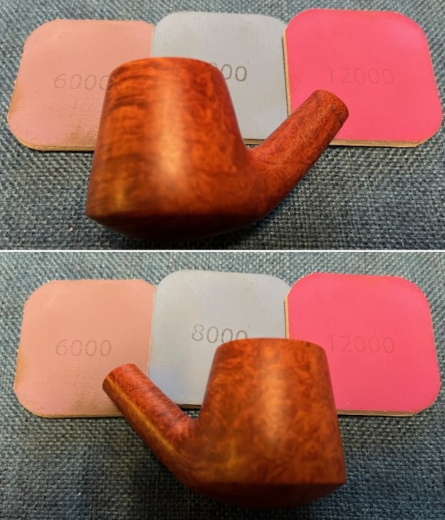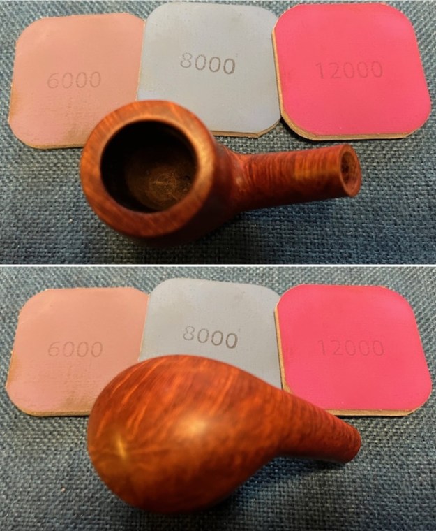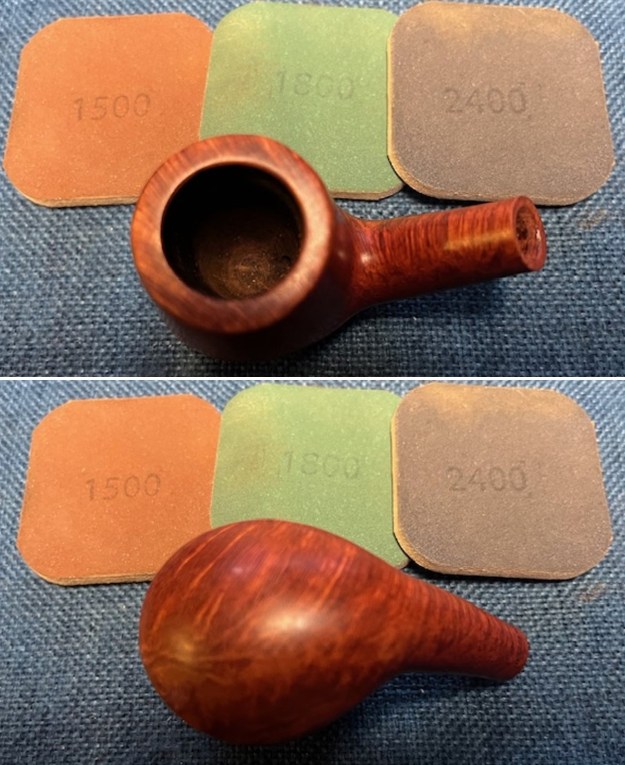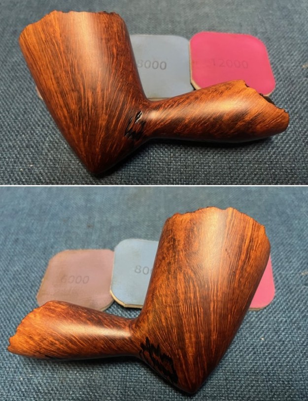 I polished the briar with micromesh sanding pads – dry sanding with 1500-12000 grit pads. I wiped the bowl down after each pad with a damp cloth to remove the sanding dust. By the end of the process the pipe bowl looked very good.