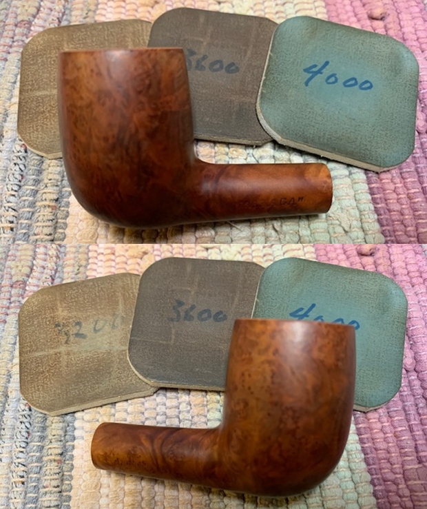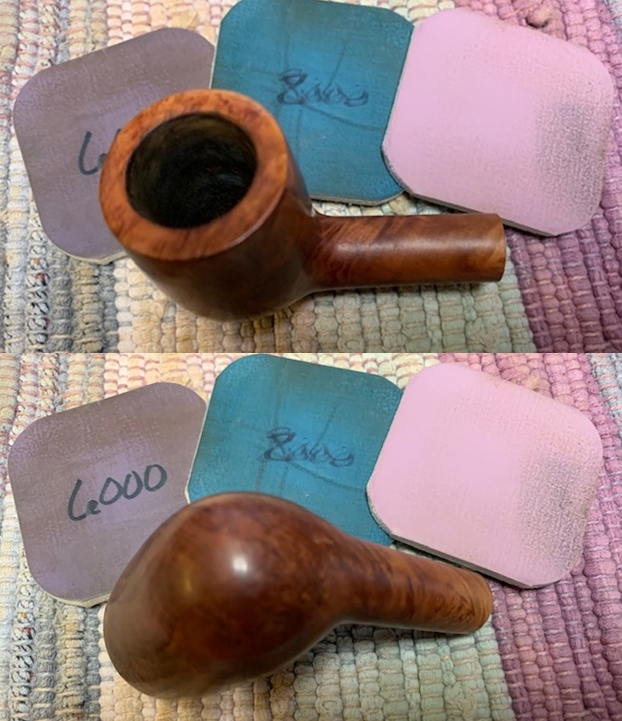 I polished the rim top and the briar with micromesh sanding pads. I wet sanded the bowl with 1500-12000 grit sanding pads. I wiped the bowl down after each pad with a damp cloth to remove the sanding dust.