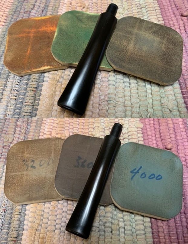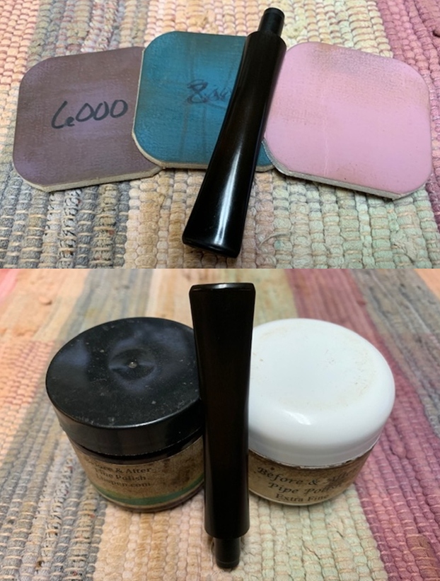 I polished the stem with micromesh sanding pads – wet sanding with 1500-12000 grit sanding pads. I wiped it down after each sanding pad Obsidian Oil. I finished by polishing it with Before & After Pipe Stem Polish both fine and extra Fine and then wiped it down with a final coat of Obsidian Oil.