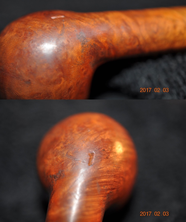 I took a photo of the stamping on the shank to show the condition. The “MALAGA” stamp is clear and readable but the IMPORTED BRIAR stamp is faint but still readable.