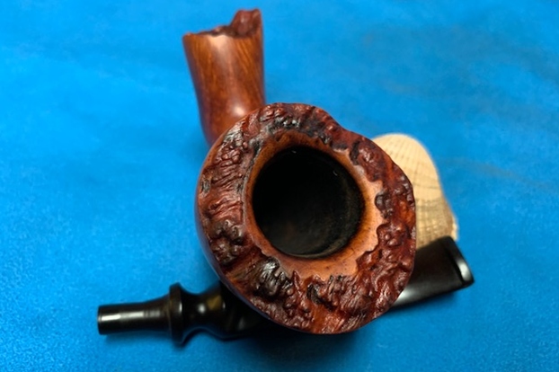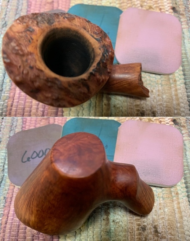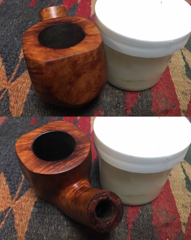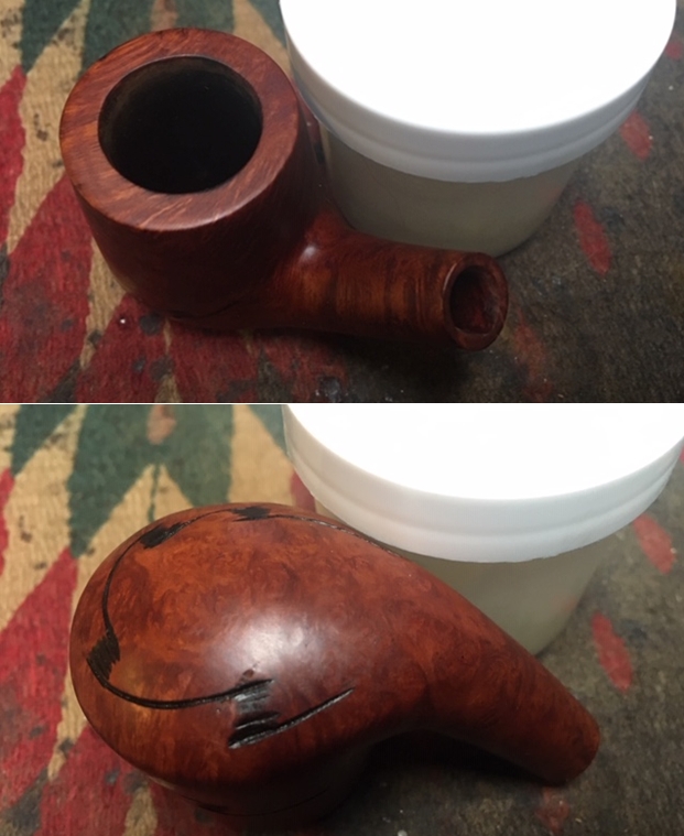 Jeff had cleaned up the pipe with his usual penchant for thoroughness. He reamed the pipe with a PipNet pipe reamer and removed the rest of it with a Savinelli Fitsall Pipe Knife. He scrubbed the bowl with undiluted Murphy’s Oil Soap with a tooth brush. He rinsed it under running warm water to remove the soap and grime. He cleaned out the inside of the shank and the airway in the stem with alcohol, cotton swabs, shank brushes and pipe cleaners. He soaked the stem in Briarvilles Pipe Stem Deoxidizer and rinsed it off with warm water. I took photos of the pipe once I received it.
