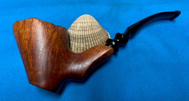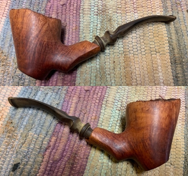 I heated the stem with the flame of a lighter and gave a more dramatic bend to follow the flow of the curves of the briar.