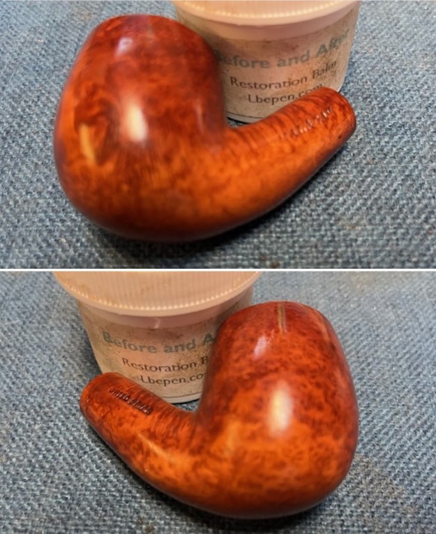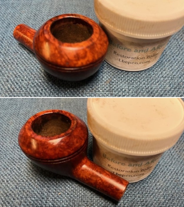 I rubbed the bowl and shank down with Before & After Restoration Balm. I worked it into the surface of the bowl sides and shank with my fingertips to clean, enliven and protect the briar. I let the balm sit for 10-15 minutes and then buffed with a cotton cloth to raise the shine. The grain came alive and the finish looked rich.