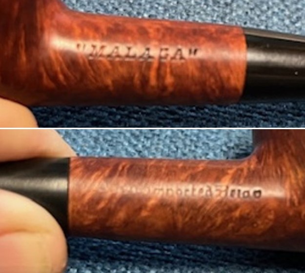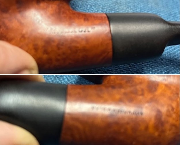 The stamping on the top left side of the diamond shank is clear and readable. It reads as noted above. I removed the saddle stem and took a photo of the pipe to give a sense of the whole.