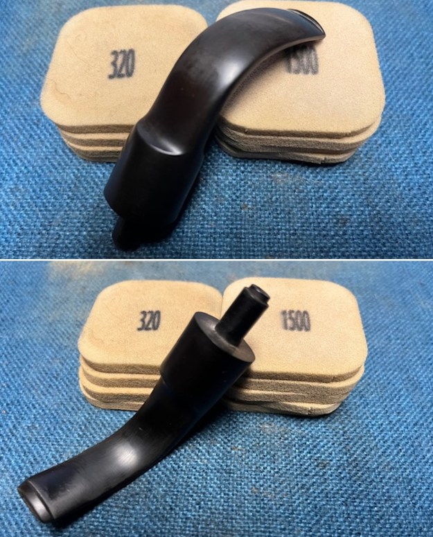 I polished the vulcanite stem with micromesh sanding pads – 1500-12000 grit pads. I wiped it down with Obsidian Oil after each sanding pad. I used Before & After Pipe Polish – both Fine and Extra Fine to further polish the stem.