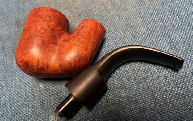 I heated the stem with the flame of a lighter and gave a more dramatic bend to follow the flow of the curves of the briar.