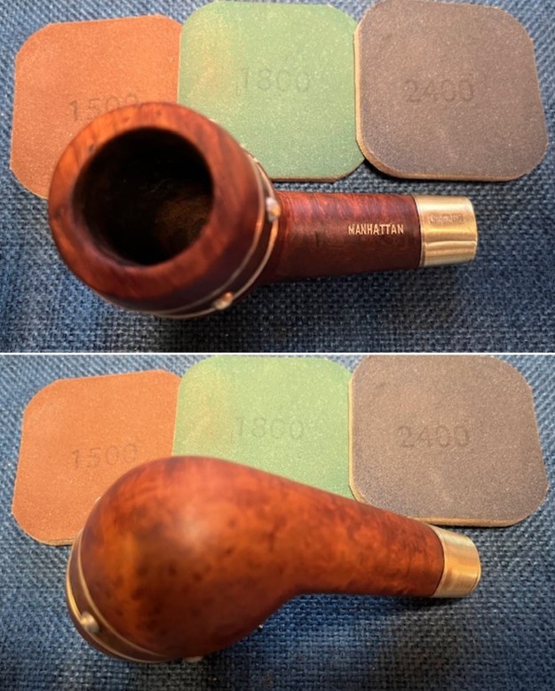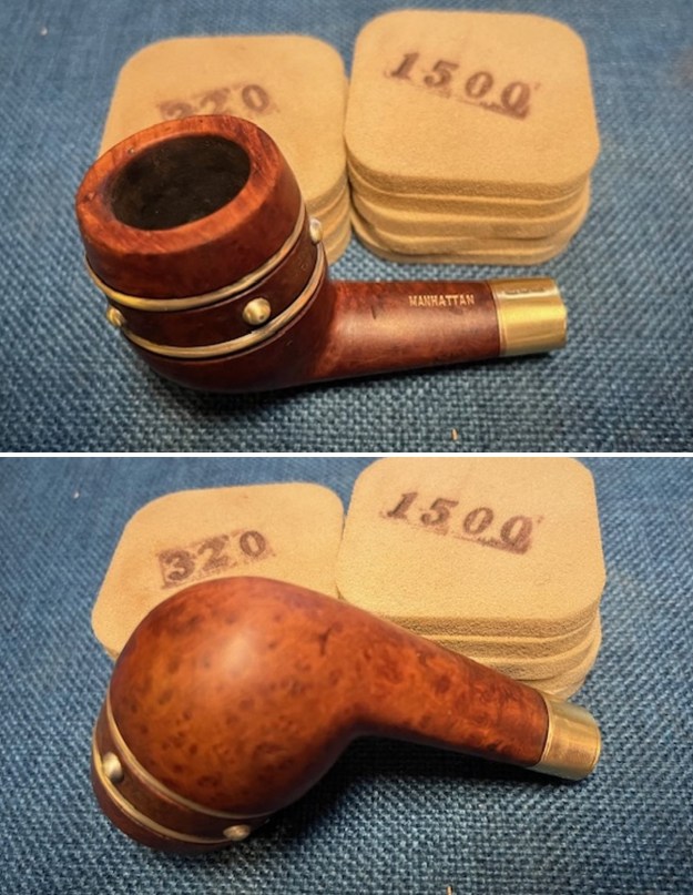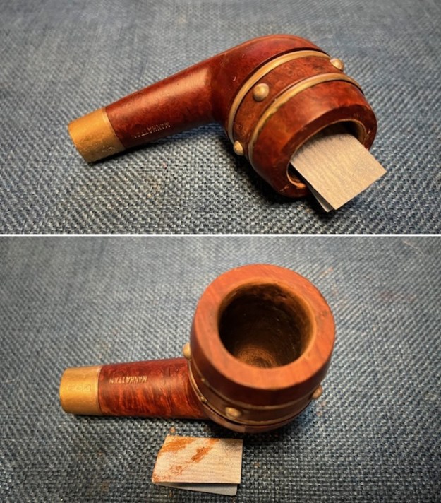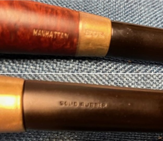 The pipe I have in hand is one that was made between the opening of the Manhattan Briar Pipe Company in 1905 in New Jersey and 1922 when SM Frank bought the company and it ceased to exist as a separate entity. That fit my experience of working on pipes with stems stamped Solid Rubber.