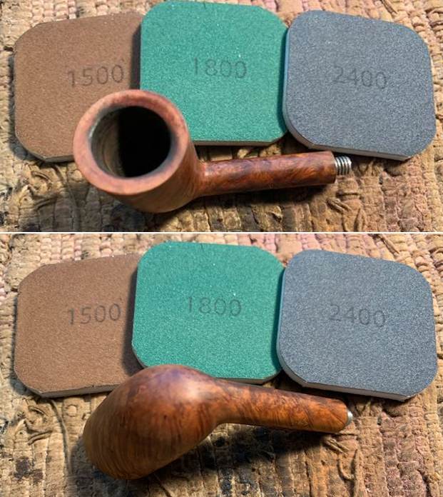 I polished the briar with micromesh sanding pads – dry sanding it with 1500-12000 grit pads. I wiped it down with a damp cloth after each sanding pad. The pipe took on a shine as I moved through the sanding pads.