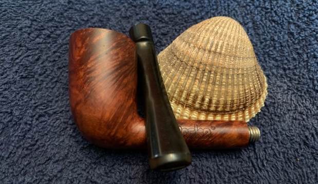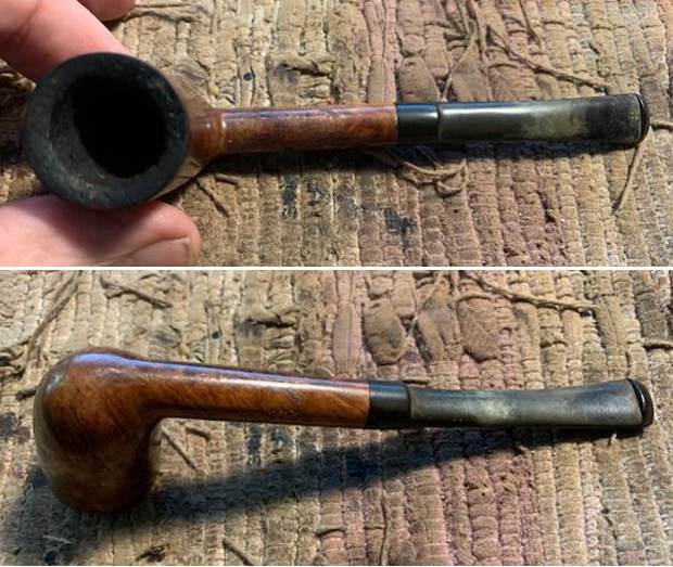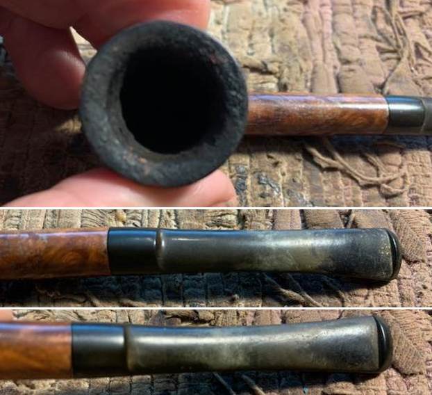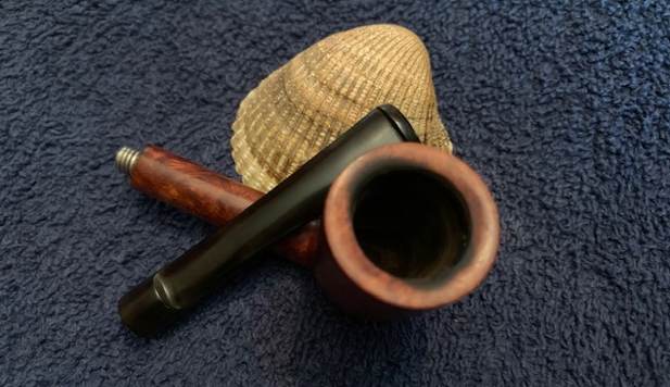 I unscrewed the stem from the tenon and took a photo of the bowl and stem to show the delicate proportions of the pipe. Note the metal threaded tenon on the shank end.