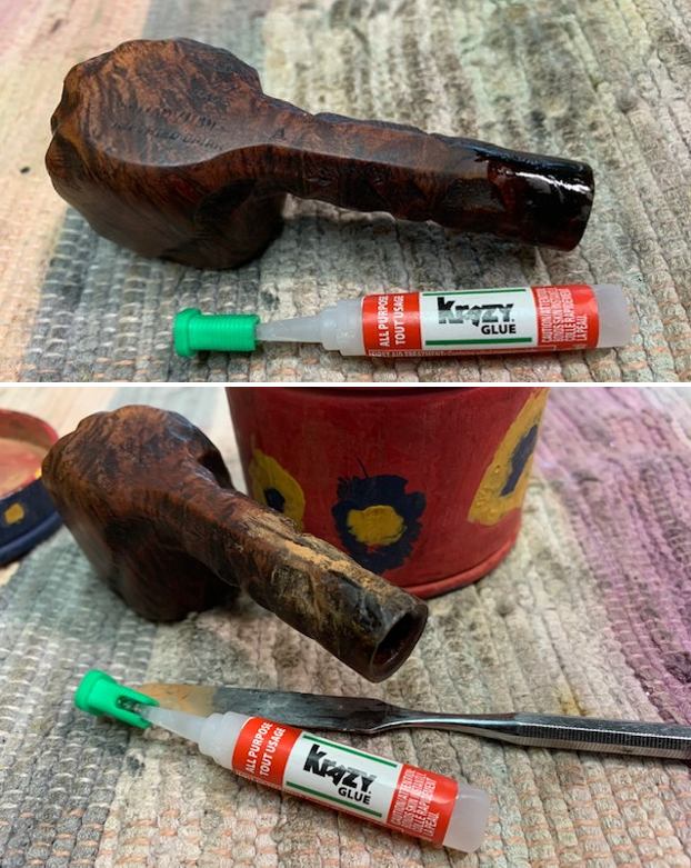 I set the bowl aside and turned my attention to the stem. There were some tooth dents on the topside and underside of the stem surface. I painted them with the flame of a lighter and was able to lift them. I sanded out the remnants and the remaining oxidation with a folded piece of 220 grit sandpaper.