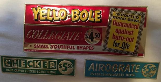 The Airograte Pipe was also made by Yello-Bole and was their version of the Falcon pipe or the Dr. Grabow Viking. It had a metal base and shank with an interchangeable bowl. Yello-Bole made a variation to the theme by make the bowl more of a tube and inserting a metal grate between the bowl and the base for dry smoking air flow. It also had the Nylon Bit like the Grabow and the Falcon version. These pipes sold for $5.95 and you could purchase a variety of interchangeable bowls for the base.
