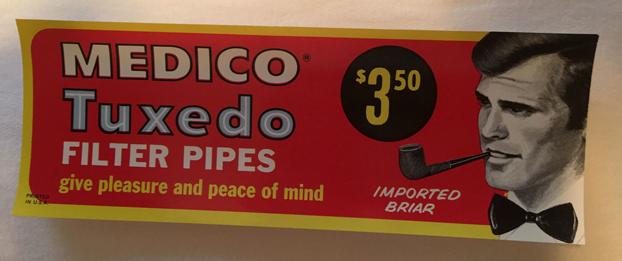The next one is for a Medico pipe. The label reads MEDICO Medalist Filter Pipes over Imported Briar and a whopping $4.95 to purchase one of these lovelies. I am not sure but I think this may well have been one of the first pipes I ever purchased at a local drugstore.