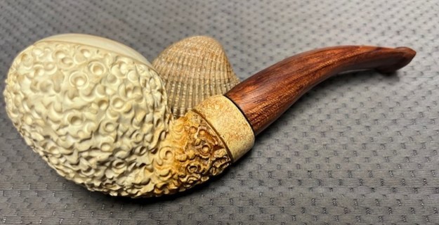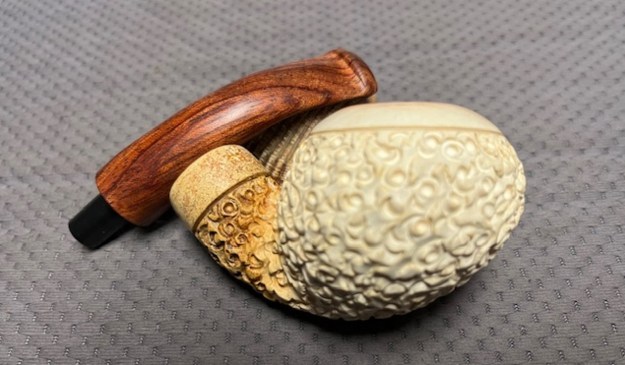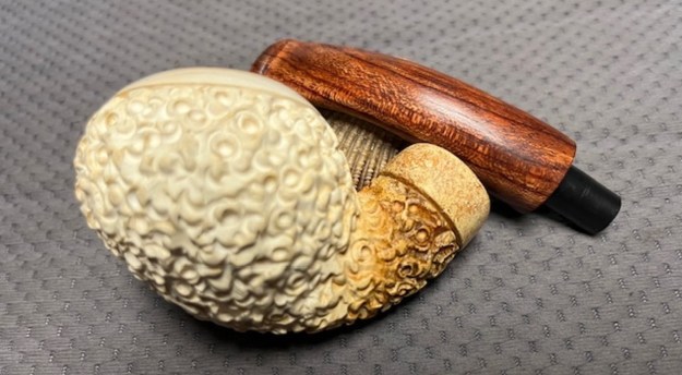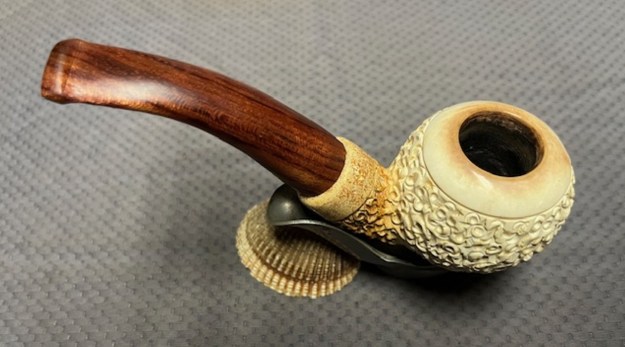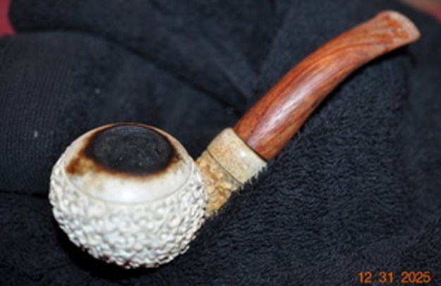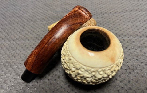 I love this Swan Neck Meerschaum and the amber stem is the proverbial frosting on the cake. The stem (and I) survived the tragic break but it is invisible now. This gift will always be treasured by me not just for the graceful beauty of the pipe itself and for its probable century old vintage, but because of the hearts and hands that gave it. Thank you Svetly and CC! You are treasured friends.