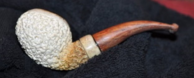 There were no markings on the pipe or on the ancient case that held it. The only information CC had from the seller at the Russian Market was that he had acquired the pipe from an antique dealer in France. Looking at all the pictures she sent we batted around questions regarding the age of the pipe and the stem’s composition – was it amber or Bakelite or something else?