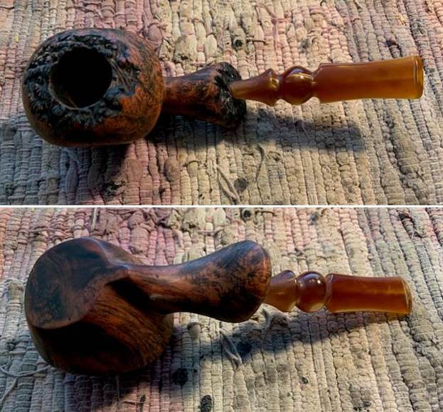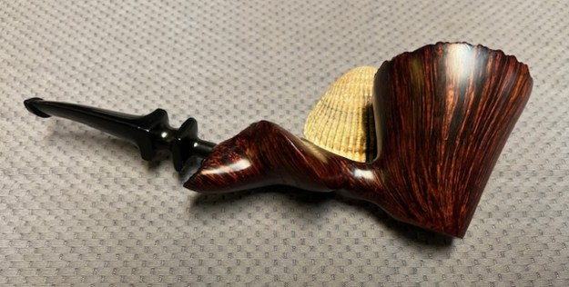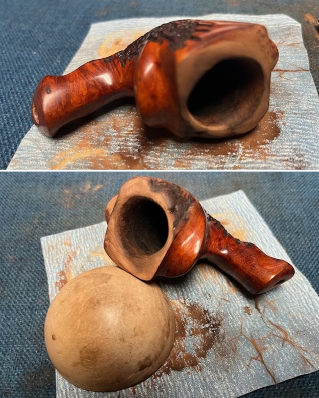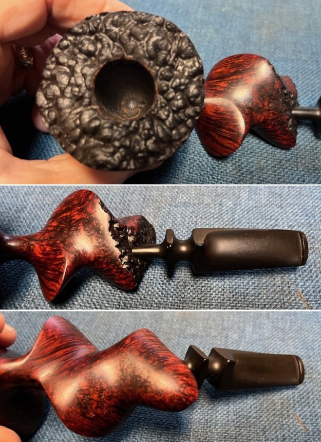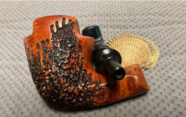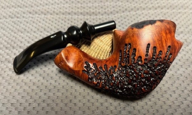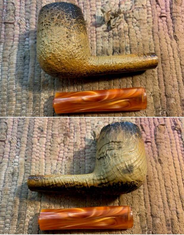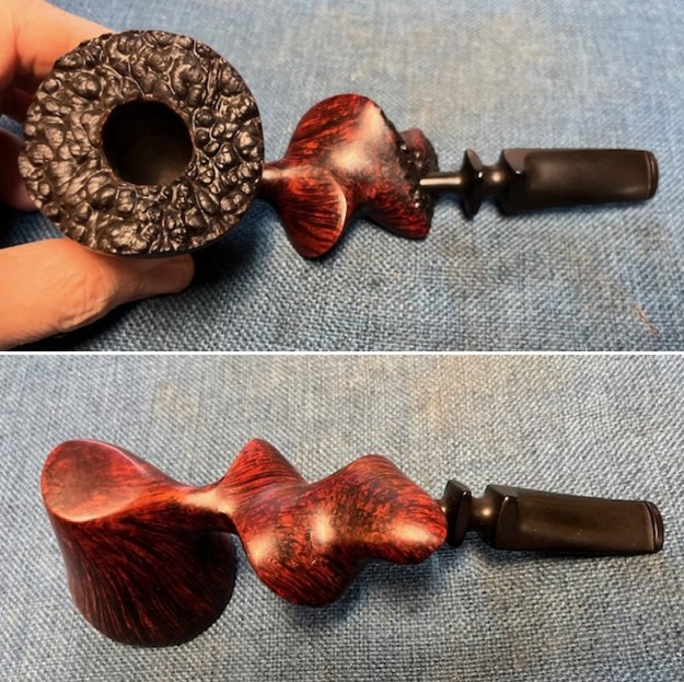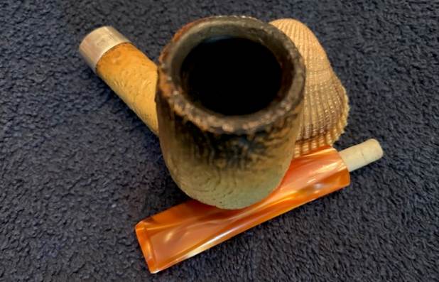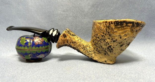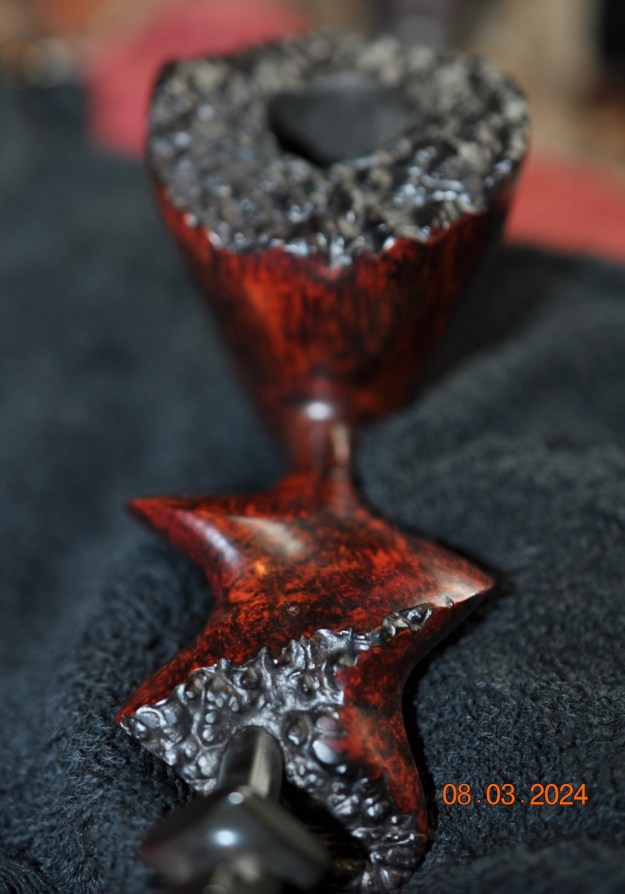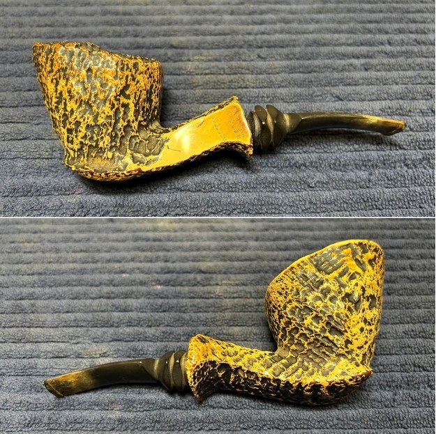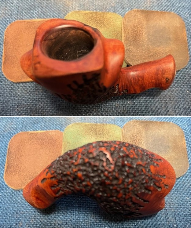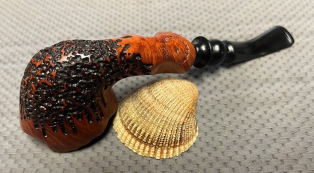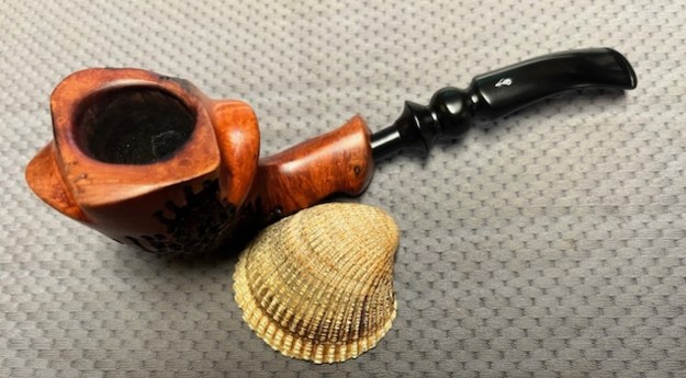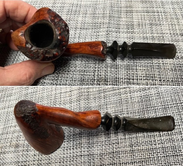 I took the pipe apart and took a photo of the pipe. It is a good looking pipe and has an interesting finish on the bowl and shank.