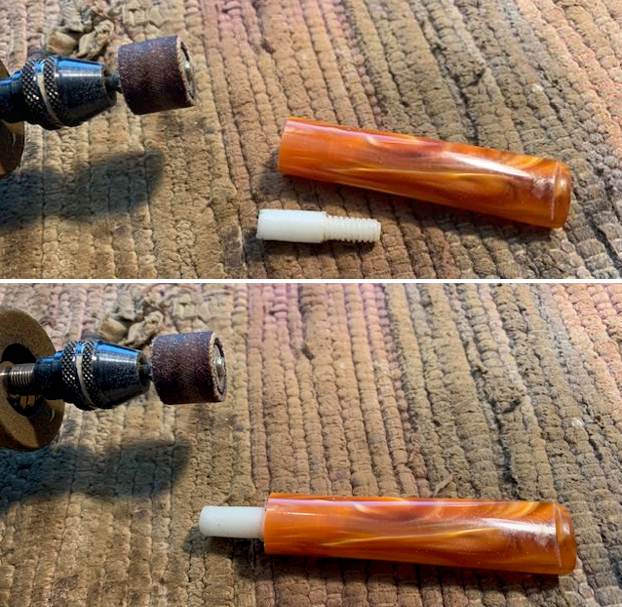 I sanded the rim top and smooth portions of the shank with 320-3500 grit 2×2 inch sanding pads. It really started to be smooth and looked amazing.