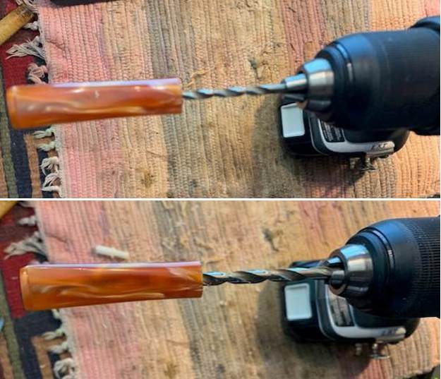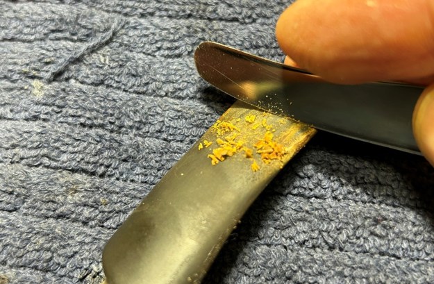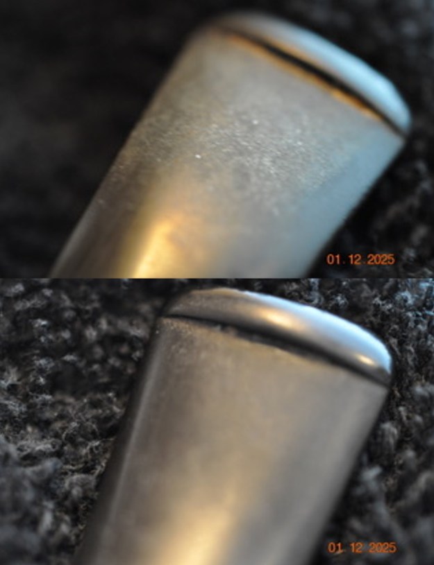 I touched up the “N” logo stamp on the top of the stem surface with white acrylic fingernail polish. Once it cured I scraped off the excess and sanded over the surface with a worn 1500 grit micromesh sanding pad to remove the excess.