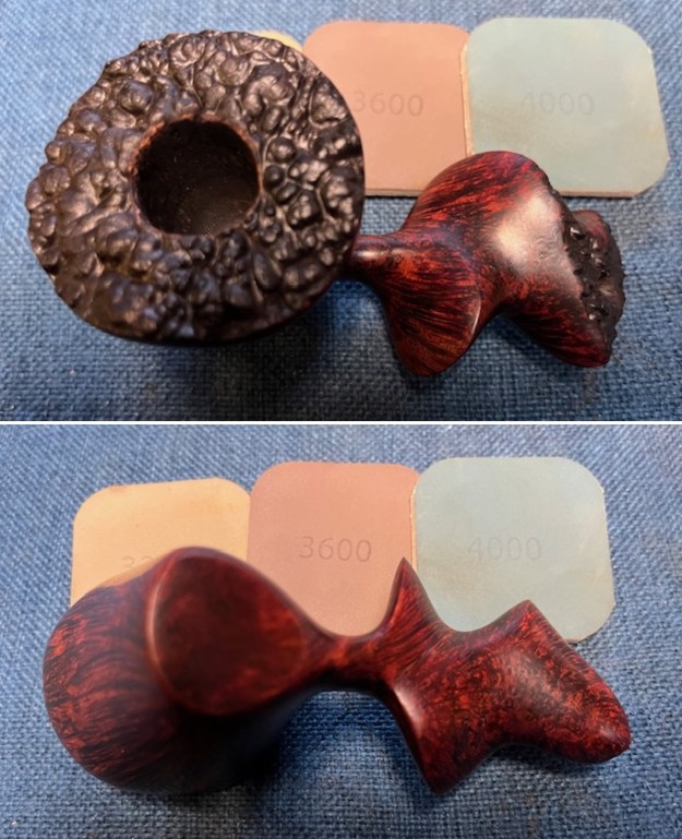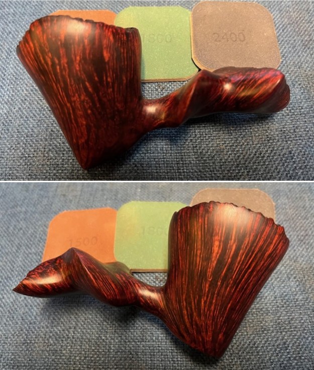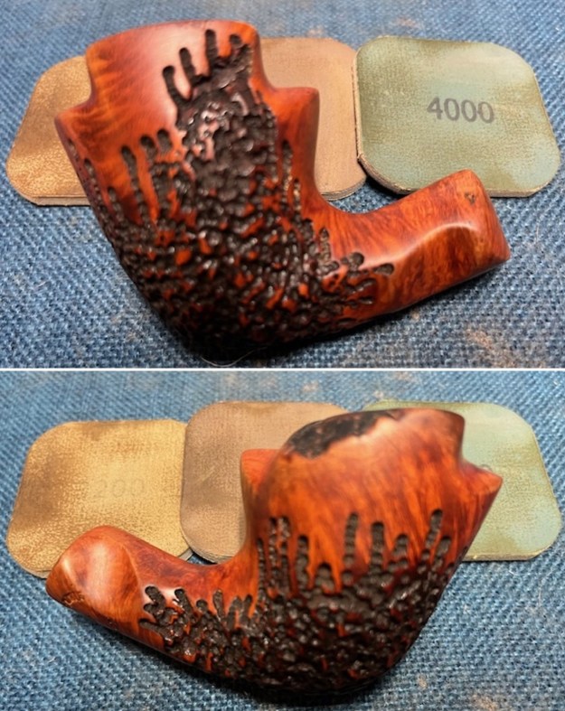 I polished the smooth briar with micromesh sanding pads – dry sanding with 1500-12000 grit pads. I wiped the bowl down after each pad with a damp cloth to remove the sanding dust. By the end of the process the pipe bowl looked very good.