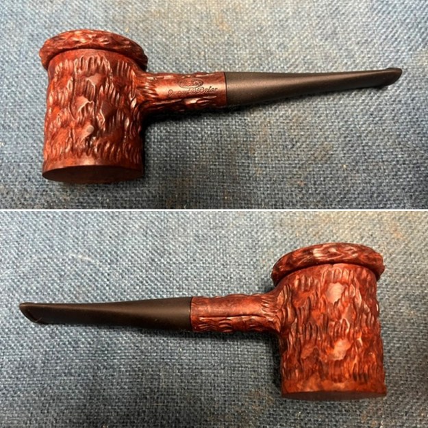 Respondent 1: While I can’t say anything about this pipe specifically, I have a hazy memory of that shape listed in a book about pipes; (I may be totally misremembering this, but here goes) the shape being called the “Dawes”, named after Harding’s Vice President? Anyone else remember this? Sounds like an interesting pipe, whatever it’s called…