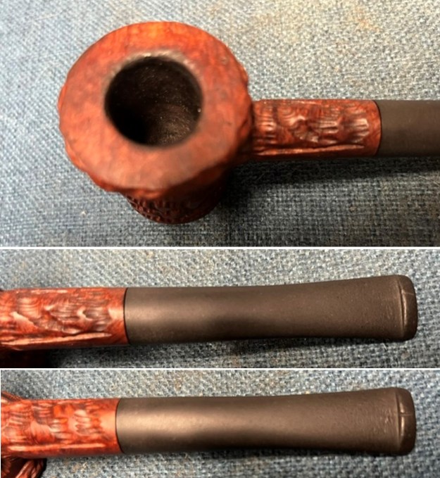 He took photos of the sides and heel of the bowl to show the finish around the bowl and the condition of the pipe. You can see the grime ground into the surface of the briar. The stain combination really makes the grain and the depths of the rustication stand out. I look forward to seeing it once it is clean and polished.