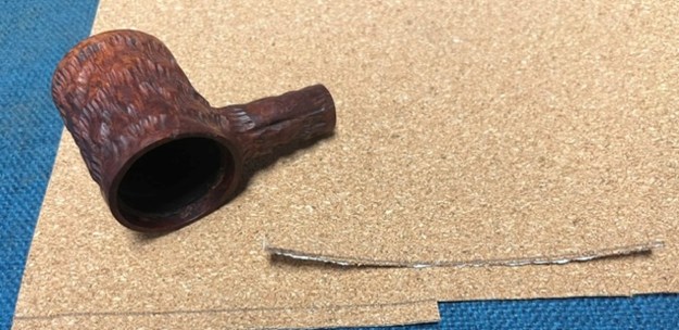 To achieve a snug fit of the insert in the base I cut a piece of cork from a thin sheet of cork to make a gasket for the base bowl. The cork had a sticky back on it and I pressed two layers or the cork in place and trimmed the excess off the top of the bowl with a knife. Once finished I gave it a light coat of Vaseline to soften and preserve it. I pressed the two parts together and it fit snugly into the outer bowl. I hand buffed the bowl with a microfibre cloth and took photos of the pipe at this point in the process.