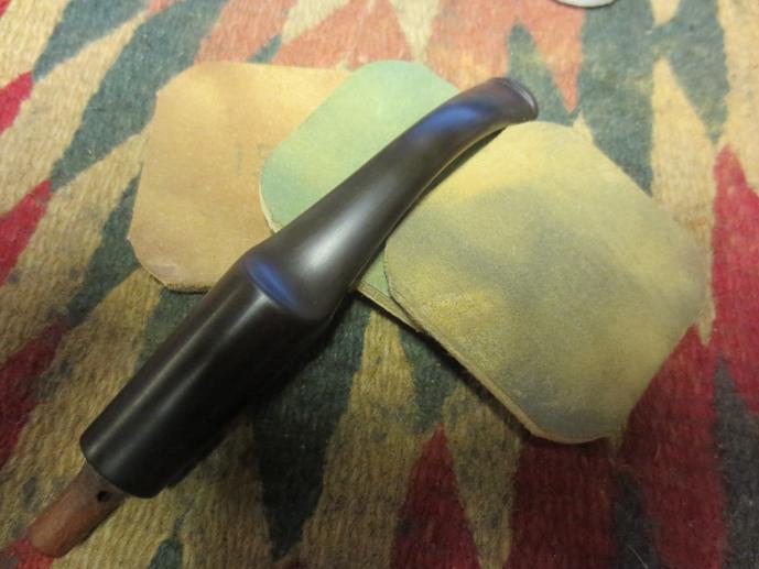 While my focus is still on the stem, I apply Before & After Fine Polish, working the polish in with my fingers. After letting it set a few minutes I wipe the polish off with a cotton pad then in the same way, apply Before & After Extra Fine Polish and let it absorb for a few minutes. I then wipe it down again with a cotton pad. These polishes not only help to revitalize the vulcanite but also to continue removing the oxidation.