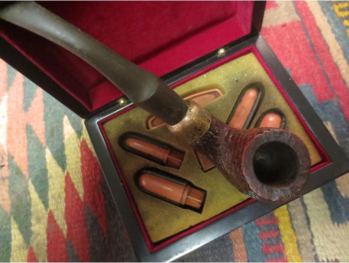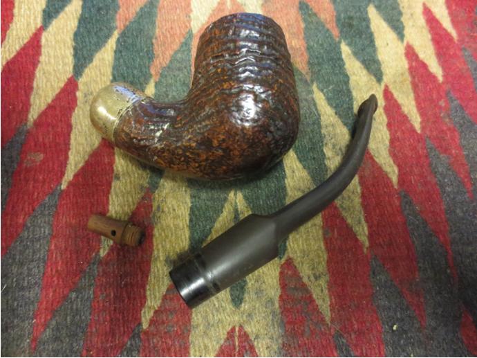 This Peterson’s System Standard Republic 312 came to me in the Lot of 66 that I secured last year on the eBay auction block. This eclectic collection of pipes has been good to me and beneficial for the Daughters of Bulgaria as I’ve recommissioned many pipes of this Lot and they are now in the hands of new stewards. This Pete can be found in the picture below just cattycorner to the lower left of the Sculpted Gourd Calabash that was already recommissioned and with a new steward in Washington State, USA – a US Airforce pipe man serving his country.