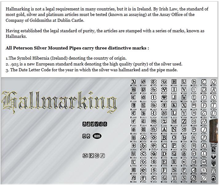 istory pertinent to our purposes began in the year 1865; the year Charles Peterson opened a small tobacco shop in Dublin. Later in 1875, Charles Peterson approached the Kapp brothers, Friedrich and Heinrich, with a new pipe design and with this, a very long-lived partnership was formed, Kapp & Peterson. This new pipe design is the now famous Peterson Patented System Smoking Pipe. By 1890, Kapp & Peterson was the most respected pipe and tobacco manufacturer in Ireland and rapidly gaining followers in England and America. In 1898 another of Peterson’s remarkable inventions became available, the Peterson-Lip (P-Lip) mouthpiece, also known as the Steck mouthpiece. So, for the purpose of this dating guide, we will study Irish history, relevant to our pipe dating needs, from 1870s until now.