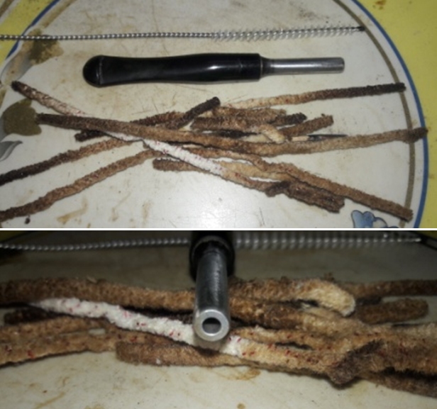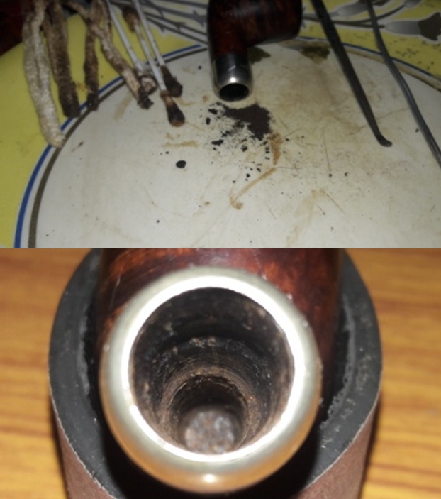 Several hours later, home from work, and again, the salt is discolored, and the wick shows evidence of gunk extraction. Again, I clear the salt from the chamber and use additional cotton buds and pipe cleaners – I’m pleasantly surprised to find that the internals are indeed clean! I use only one cotton bud and pipe cleaner. I can almost guarantee, this Peterson is the cleanest it’s been since it came from the factory in Ireland!