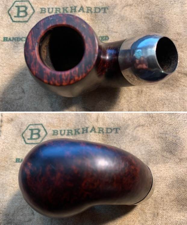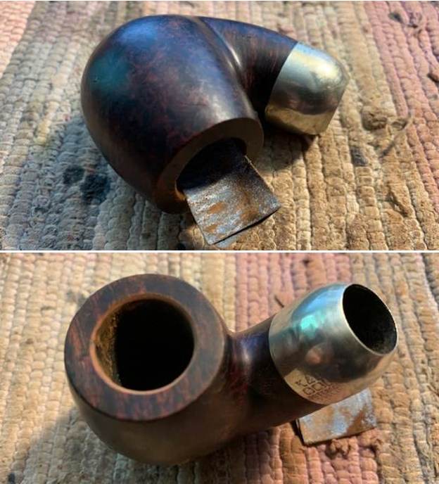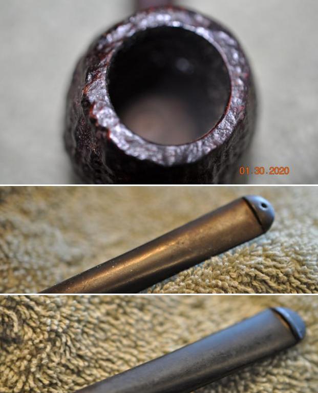 I took a close-up photo of the rim top to show the condition of the bowl and inner edge of the bowl and the stem. You can clearly see the cake in the bowl and the darkening and lava on the rim top. The stem photos show the deep oxidation on the stem and the silver band.