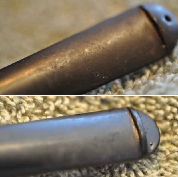 I set the bowl aside and turned my attention to the stem. I scrubbed the stem with Soft Scrub and cotton pads to remove the oxidation. I was able to rid the surface of the majority of the brown and what was left would be able to be sanded off.