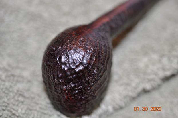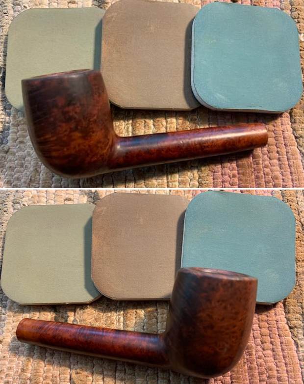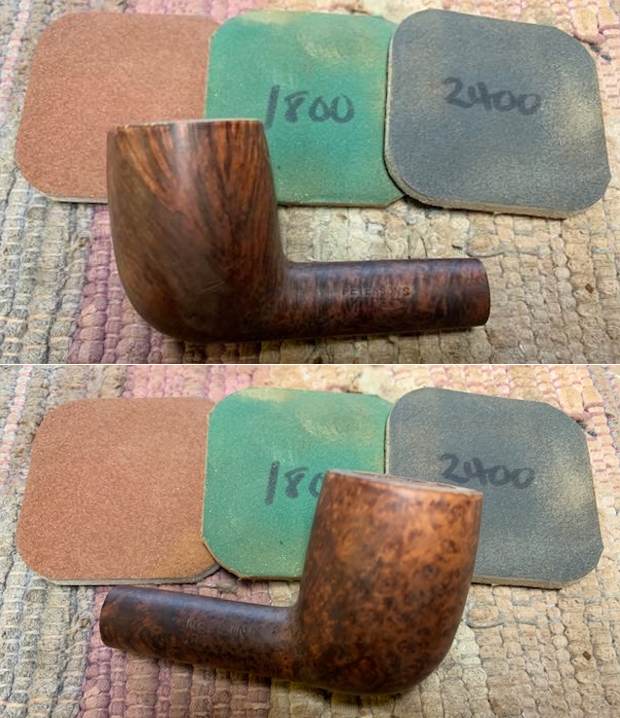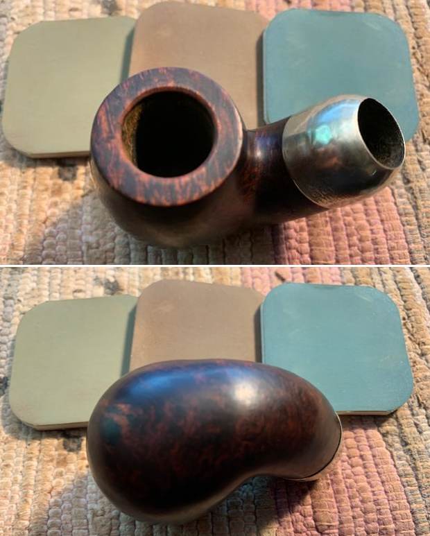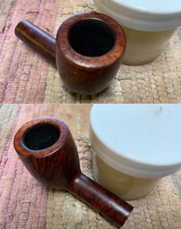 I reamed the pipe with a Savinelli Fitsall Pipe Knife to remove the thin cake in the bowl and check the bowl walls. I sanded the bowl with a piece of dowel wrapped with 220 grit sandpaper. It looked much better at this point.