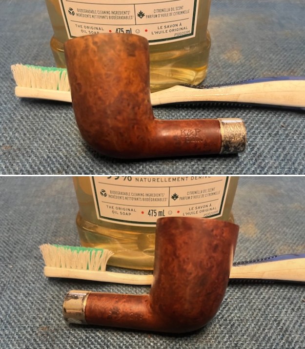 I scrubbed the externals of the pipe with undiluted Murphy’s Oil Soap and a tooth brush to remove the grime in the finish and on the rim top. I worked on it until it looked much better and then rinsed it off with warm water. I dried it off with a soft cloth.