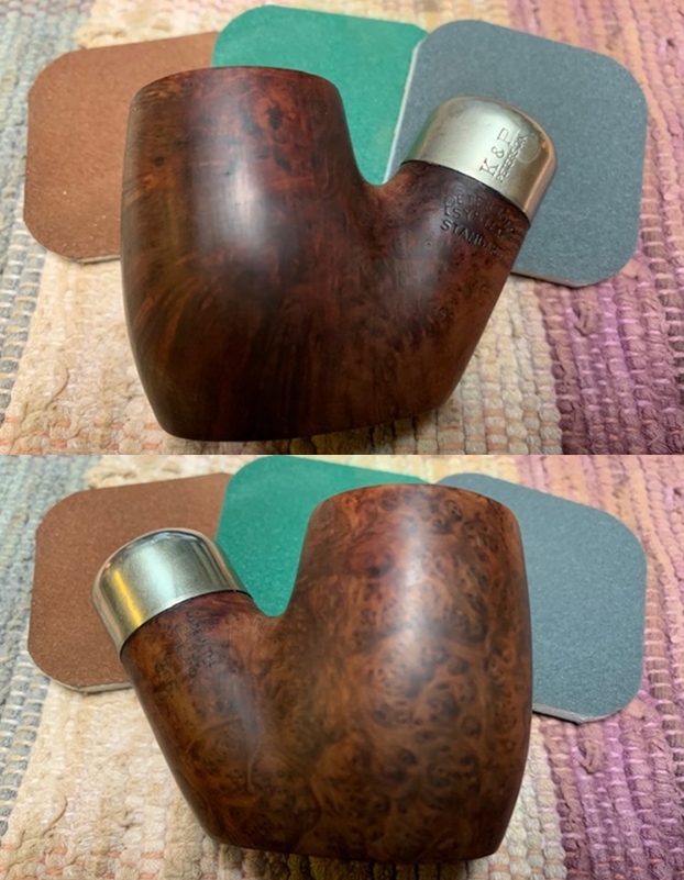 The new stem was in great condition so I polished it with micromesh sanding pads – 1500-12000 grit pads. I wiped it down with Obsidian Oil after each sanding pad. I used Before & After Pipe Polish – both Fine and Extra Fine to further polish the stem.