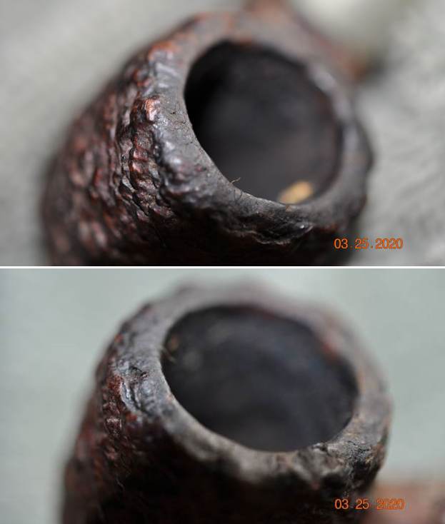 He took photos of the bowl sides and heel to show the rugged rustication around the bowl and also the amount of debris that was ground into the crevices of the finish. There is something ruggedly charming about this old timer that grabbed our attention.