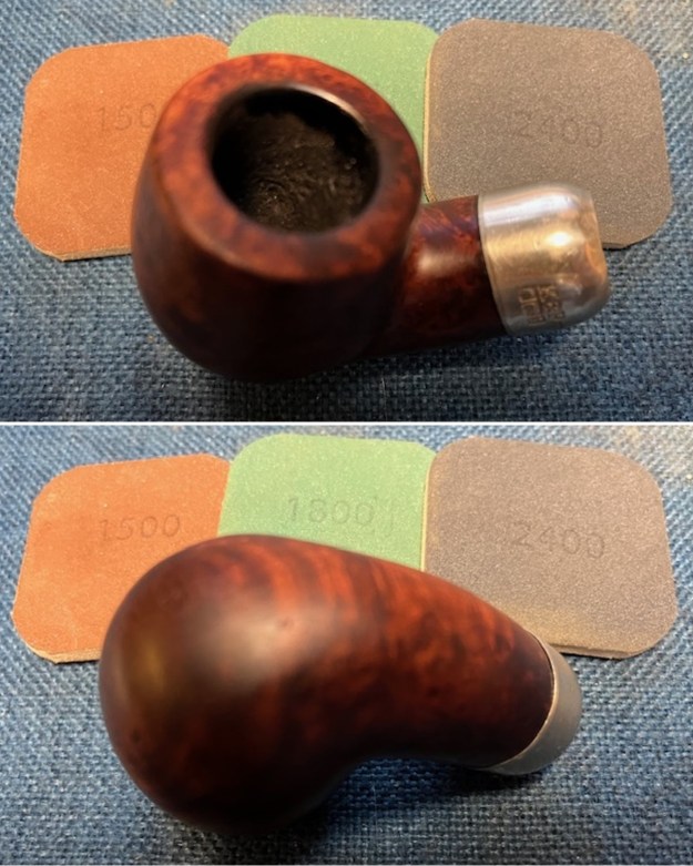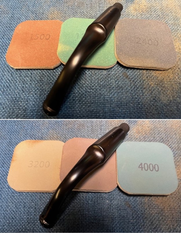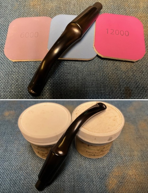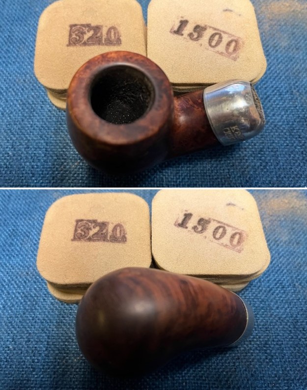 I sanded the stem with 320-3500 grit sanding pads to further blend in the repairs and remove the remaining oxidation on the stem surface. I wiped it down with Obsidian Oil after each sanding pad to remove the sanding dust.