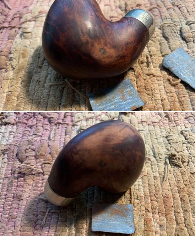 Jeff took photos of the stamping on the sides of shank. The stamping was readable as you can see from the photos. It read as noted above. The nickel ferrule on the shank end is stamped on the top and left side K&P Peterson’s over three Peterson marks.