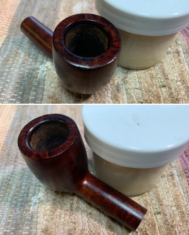 I took photos of the sides of the shank to show the stamping. The stamping is readable in the photos below and is as noted above. I took the stem off the pipe and took a photo of the parts to give a sense of proportion.