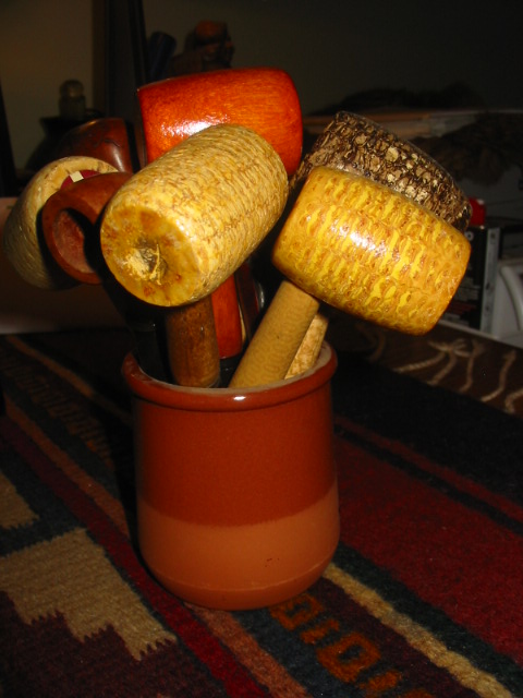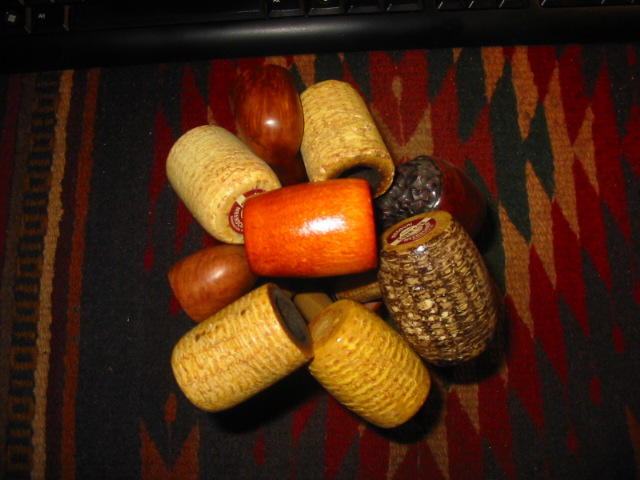 I was also overwhelmed, in my beginnings, by the multitude of pipe materials to choose from (e.g., briar, corn cob, cherrywood, morta [bog wood], olive, maple, clays, meerschaum, metal, etc.) and the multitude of pipe styles to choose from (e.g., quarter bents, half bents, full bents, straights, etc.), not to mention the incredible array of pipe shapes (e.g., acorn, pear, apple, author, bent apple, bent ball, bent billiard, bent brandy, bent bulldog, bent Dublin, bent egg, bent pot, billiard, blowfish, brandy, bulldog, calabash, Canadian, cavalier, chimney, churchwarden, cutty, Dublin, freehand, hawkbill, horn, Liverpool, Lovat, lumberman, Oom Paul, panel, poker, pot, prince, Rhodesian, skater, tomato, volcano, Zulu). Then there were the terms associated with the architecture of the pipe itself (e.g., lip, bit, stem, tenon, stem face, shank face, shank, stummel, bowl, mortise, draft, plenum, heel, foot, rim, chamber, etc.). And lest we forget the types of stem choices (e.g., saddle, tapered, military/army style, screw type, combination type, etc.) and bit style (e.g., standard, wide comfort, fishtail, P-lip, regular and double bore, denture bit, and double comfort bit, to name but a few). A good place to begin to appreciate these terms might be Pipedia, a “wiki for pipes”.