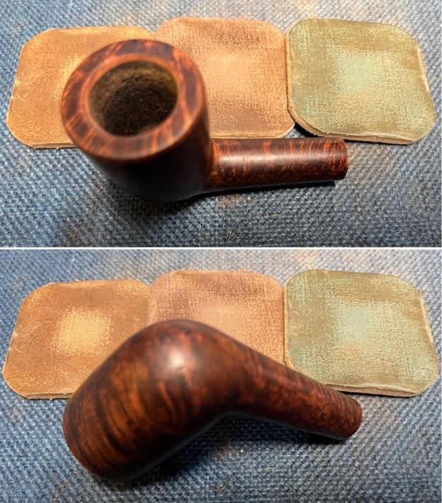 I turned to Pipedia for any additional information as did not find anything new. I have included the link in case some of you might want to check it out (https://pipedia.org/wiki/Lee).Now I had a pretty good idea of how the pipe was stamped and made. With that information I moved forward to work on the pipe itself and see what I had to do with it. Jeff had done an amazing job in removing all of the cake and the lava on the rim top. He had reamed the bowl with a PipNet Pipe Reamer and cleaned up the remnants with a Savinelli Fitsall Pipe Knife. He took the cake back to bare briar so we could check the walls for damage. He scrubbed the exterior of the bowl with Murphy’s Oil Soap and a tooth brush to remove the grime on the bowl and rim and was able to remove the lava and dirt. He cleaned out the interior of the bowl and shank with pipe cleaners, cotton swabs and alcohol until they came out clean. He cleaned the stem with Soft Scrub to remove the grime on the exterior and cleaned out the airway with alcohol, cotton swabs and pipe cleaners. He soaked the stem in Before & After Deoxidizer and rinsed if off and recleaned the inside of the stem with alcohol and pipe cleaners. I took photos of the pipe before I started my part of the restoration. I took some photos of the rim top and stem. The rim top and bowl looked very good. The damage to the front left inner edge and right rear inner edge of the bowl are visible in the photo. The close up photos of the stem shows the tooth marks and chatter on the top and underside of the stem near the button.  The stem is also slightly overclocked to the right.I took a photo of the stamping on the sides and underside of the shank to show the condition after the cleanup. It looks good.  I removed the stem from the shank and took a photo of the pipe at this point. You can clearly see the condition, size and shape of the pipe.I started my part of the restoration work on this pipe by addressing the overclocked stem. I heat the tenon in the stem to loosen the glue that holds it and then twisted the stem into position and aligned it on the shank. I let the pipe cool and the glue reset before removing the stem.I addressed the damage and darkening on the edge of the rim, particularly on the front and rear of the inner edge. I used a folded piece of 220 grit sandpaper to remove the damage to the bowl.  I started polishing the edge with 400 grit wet dry sandpaper.  I sanded the outside of the briar with micromesh sanding pads to polish the finish. I wet sanded with 1500-12000 grit sanding pads and wiped it down with a damp pad after each pad.   I worked some Before & After Restoration Balm into the surface of the briar with my fingertips to clean, enliven and protect the briar. I let the balm sit for about ten minutes and then buffed with a cotton cloth to raise the shine. The photos show the bowl at this point in the restoration process.  I set the bowl aside and turned my attention to the stem. I “painted” the stem surface with the flame of a lighter to lift the tooth marks. I was able to lift most of them using this method. I filled in the remaining marks with black super glue and set the stem aside while the repairs cured. I sanded the stem with 220 grit sandpaper and 400 grit wet dry sandpaper to remove the scratching in the vulcanite.  I polished the stem with micromesh sanding pads – dry sanding with 1500-12000 grit sanding pads. I wiped it down after each sanding pad with a cloth containing some Obsidian Oil. I finished polishing it with Before & After Pipe Stem Polish – both Fine and Extra Fine and buffed it off with a cotton cloth.   This Pipes by Lee Limited Edition 3 Star Rhodesian is a nice looking pipe. The finish looks very good and the grain stands out. I put the stem back on the bowl and buffed the pipe with Blue Diamond on the buffing wheel. I carefully avoided the stamping on the shank sides during the process. I gave the bowl and the stem multiple coats of carnauba wax on the buffing wheel and followed that by buffing it with a clean buffing pad on the buffer. I hand buffed the pipe with a microfiber cloth to deepen the shine. The finished pipe is an excellent example of the pipes that were made by Pipes by Lee. The flow of the grain and the way the shape follows it is very well done. Give the finished pipe a look in the photos below. I can only tell you that it is much prettier in person than the photos capture. The dimensions of the pipe are Length: 5 ½ inches, Height: 1 ½ inches, Outside diameter of the bowl: 1 ¾ Chamber diameter: 7/8 of an inch. This interesting Pipes by Lee Rhodesian is a great looking pipe in excellent condition. Thanks for walking through the restoration with me as I worked over another beautiful pipe. I will be adding it to the rebornpipes store soon. If you want to add it to your collection send me an email or a message! Thanks for your time.