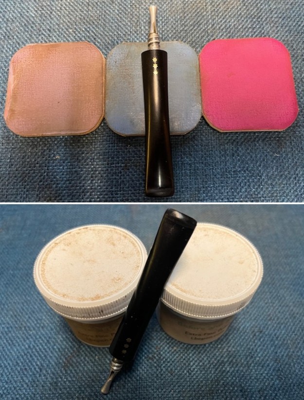 Now I had a pretty good idea of how the pipe was stamped and made. With that information I turned to work on the pipe itself. I started my work on the pipe by cleaning up the inner edge of the rim. I used a folded piece of 220 grit sandpaper to smooth out the damage on the front left side. I gave the edge a slight bevel to minimize the damage. It looked much better when finished. I polished the briar with micromesh sanding pads to remove the uneven coat of varnish or shellac on the briar. I used 1500-12000 grit sanding pads and wiped the bowl down with a damp cloth after each sanding pad. I worked some Before & After Restoration Balm into the finish of the bowl, rim top and shank with my fingertips. The product works to clean, enliven and protect the briar. I find that the balm really makes the briar come alive again. The contrasts in the layers of stain really made the grain stand out. I let the balm sit for 15 minutes and then buffed with a cotton cloth to raise the shine. The bowl really looks good at this point. I set the bowl aside and turned my attention to the stem. The stem looked quite good but as I noted above there was a rather large repair on the underside of the stem near the button. My guess is that there was a bite through that was repaired. The repair looked quite good and was solid. It looks like a two-part epoxy repair. It is solid and slightly lighter in colour than the stem. I sanded the repaired with 320-3500 grit sanding pads to polish that area. I wiped it down with a damp cloth after each pad. I applied some black CA glue to the top of the repair to darken it and in doing so found another repair on the topside – a hairline crack in the surface of the stem ahead of the button. I covered that with black CA glue at the same time. Once that cured I sanded it smooth with 220 grit sandpaper. I polished the stem with micromesh sanding pads -dry sanding with 1500-12000 grit pads. I wiped the stem down after each pad with Obsidian Oil. I finished this stage in the polishing with Before & After Fine and Extra Fine Polishing Compound to protect and deepen the shine. The repairs were less visible but still present. With the bowl and the stem finished I put the Lee Limited Edition 3 Star Dublin back together and buffed it on the wheel using Blue Diamond to give it a shine. I gave the bowl and the stem multiple coats of carnauba wax on the wheel. I buffed it with a clean buffing pad to raise the shine. I hand buffed it with a microfiber cloth to deepen the shine. It really is a great looking pipe. The dimensions of the pipe are – Length: 5 ½ inches, Height: 1 ¾ inches, Outside diameter of the bowl: 1 ¼ inches, Chamber diameter: ¾ of an inch. The weight of this pipe is 1.02 ounces /29 grams. This Pipes by Lee Limited Edition 3 Star Dublin is another great looking pipe. It is much more beautiful in person than these photos can capture. The repairs on the stem are solid and the pipe will be a great deal for someone. I will be putting it on the rebornpipes store in the American (US) Pipemakers Section soon. If you would like to add it to your collection let me know. This is another pipe that has the possibility of transporting the pipe man or woman back to a slower paced time in history where you can enjoy a respite. Thanks for walking through the restoration with me.