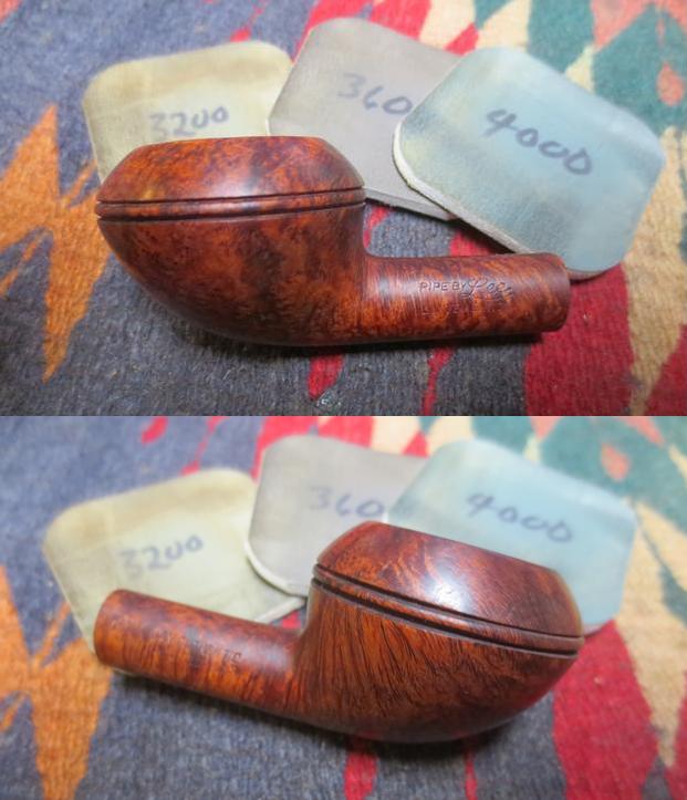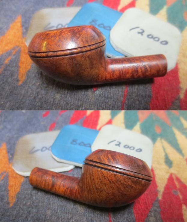 I buffed the bowl with Blue Diamond to polish it a bit and see where I needed to do some work before the final buff. I hand polished the briar with micromesh sanding pads – wet sanding with 1500-2400 grit pads and dry sanding with 3200-12000 grit pads. I wiped the bowl down with a damp cloth after each buffing pad. I hand buffed it with a microfibre cloth after the 12000 grit pad. The pictures below show the progress of the polishing on the briar.
