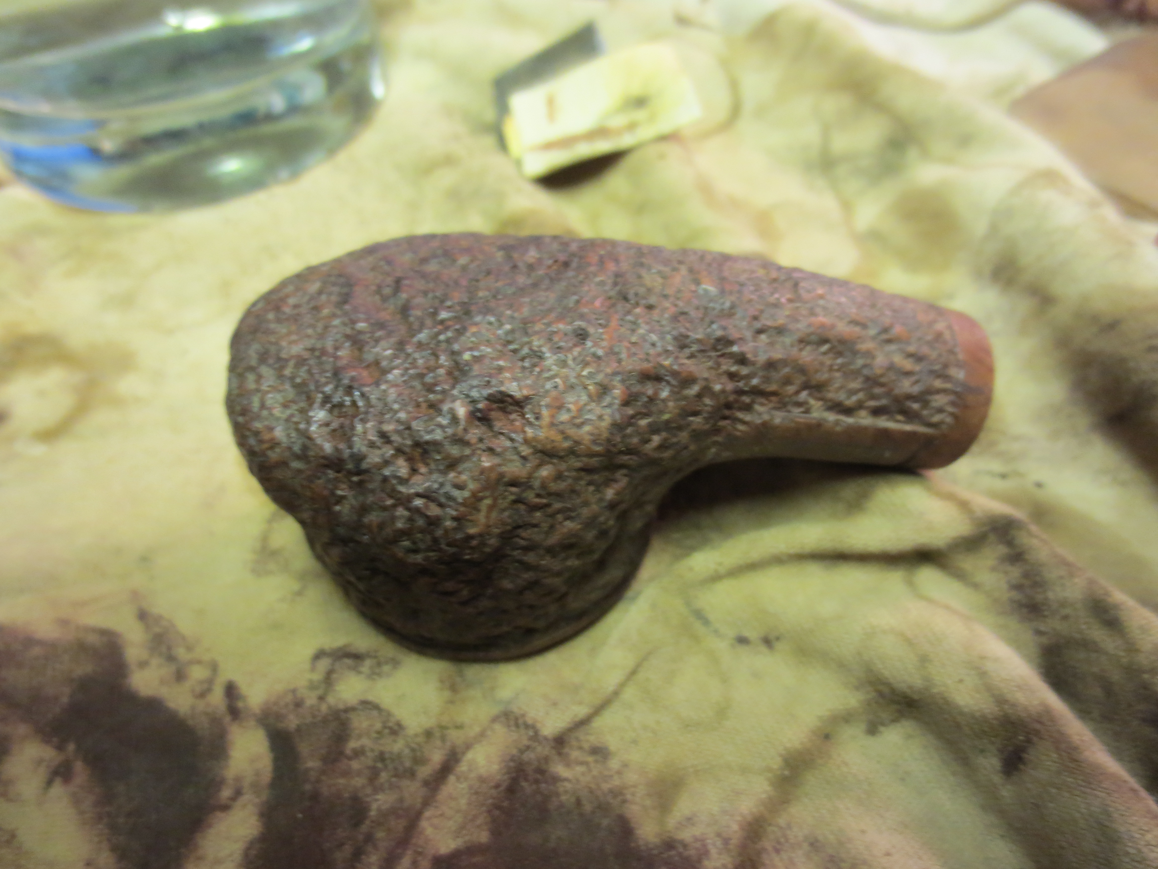 Now I had a pretty good idea of how the pipe was stamped and made. With that information I turned to work on the pipe itself. I started my work on the pipe by cleaning up the inner edge of the rim. I used a folded piece of 220 grit sandpaper to smooth out the damage on the front left side. I gave the edge a slight bevel to minimize the damage. It looked much better when finished.