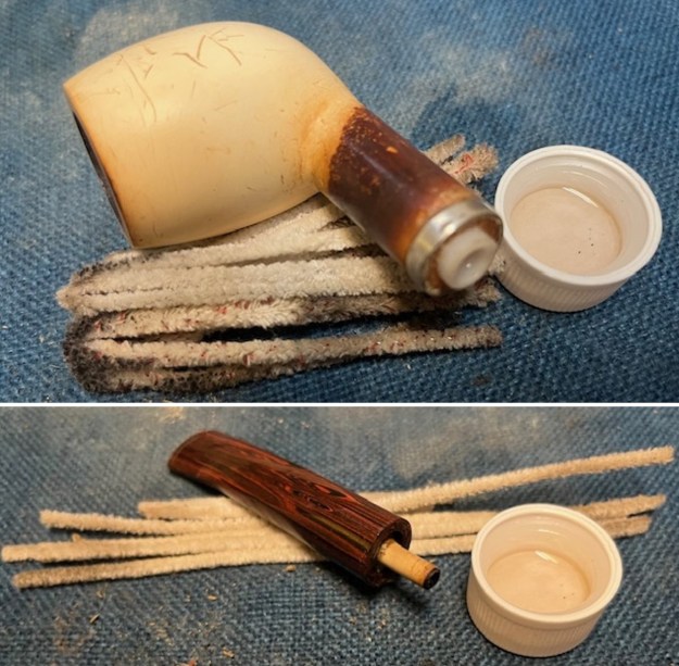 I cleaned out the inside of the shank and the airway in the stem with alcohol, cotton swabs and both bristle and regular pipe cleaners.