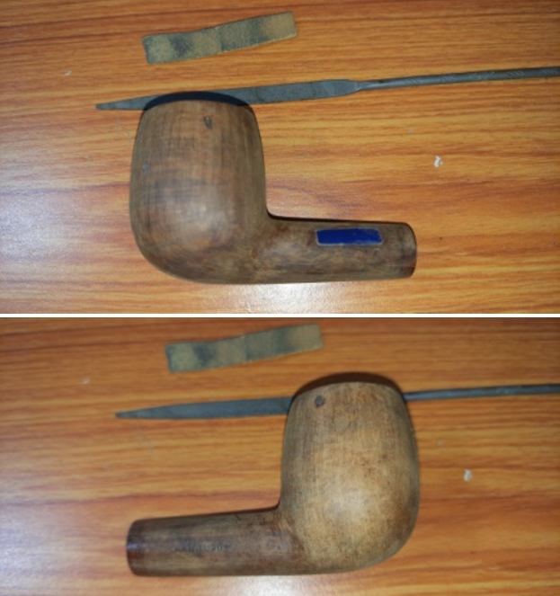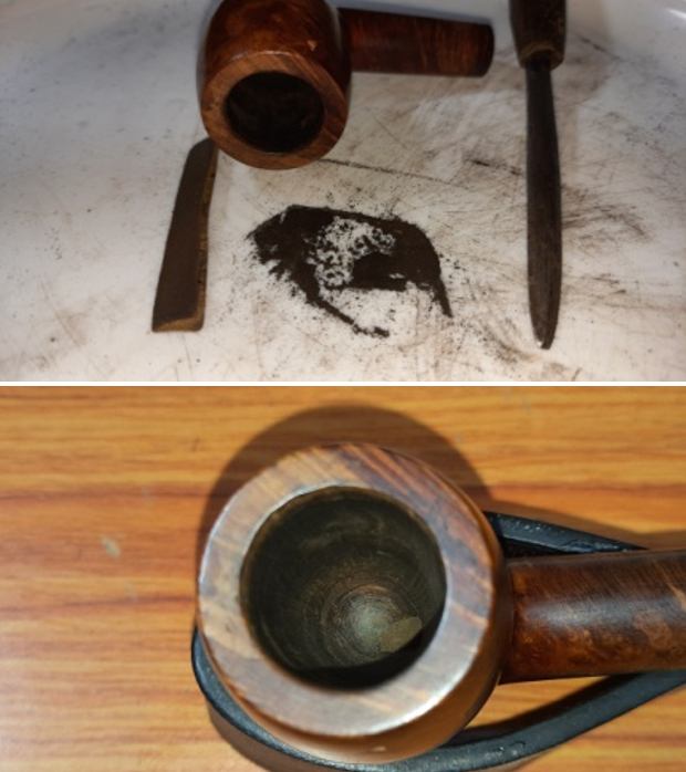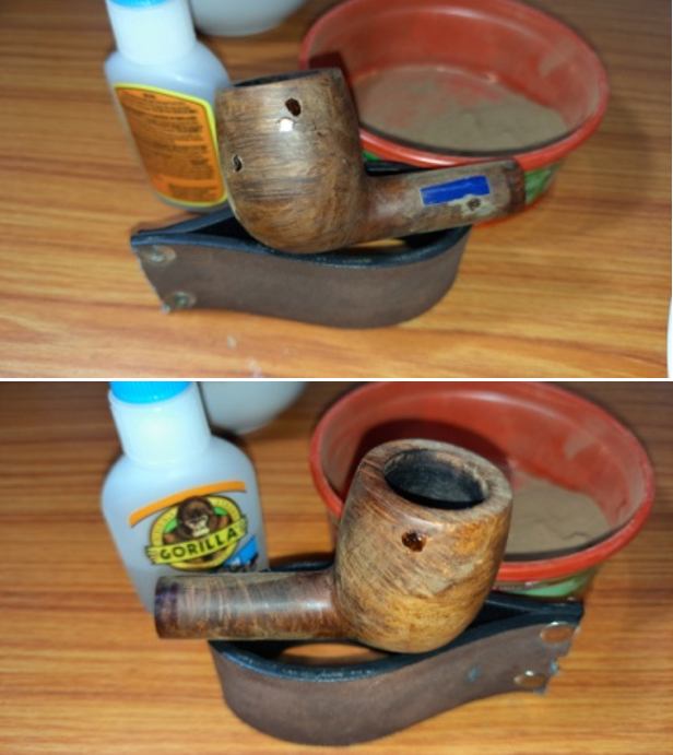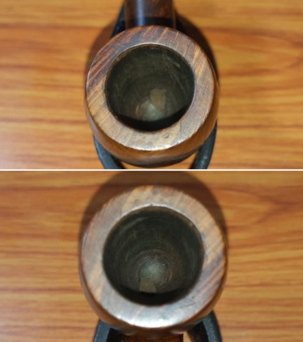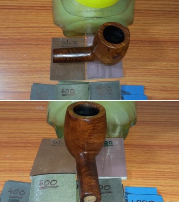 I scraped the bowl with a Savinelli Fitsall Pipe Knife. I removed all of the cake on the bowl walls. I sanded the bowl walls smooth with a piece of dowel wrapped with 220 grit sandpaper. The bowl was smooth and undamaged.