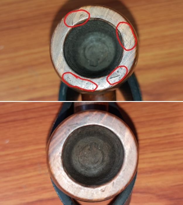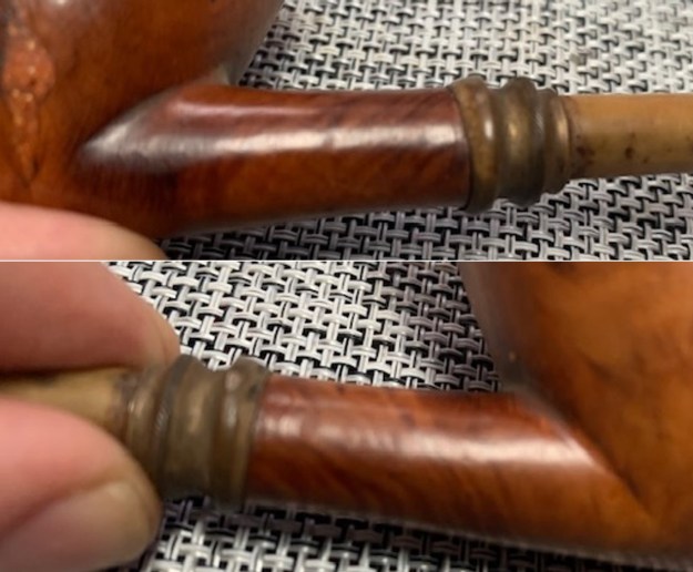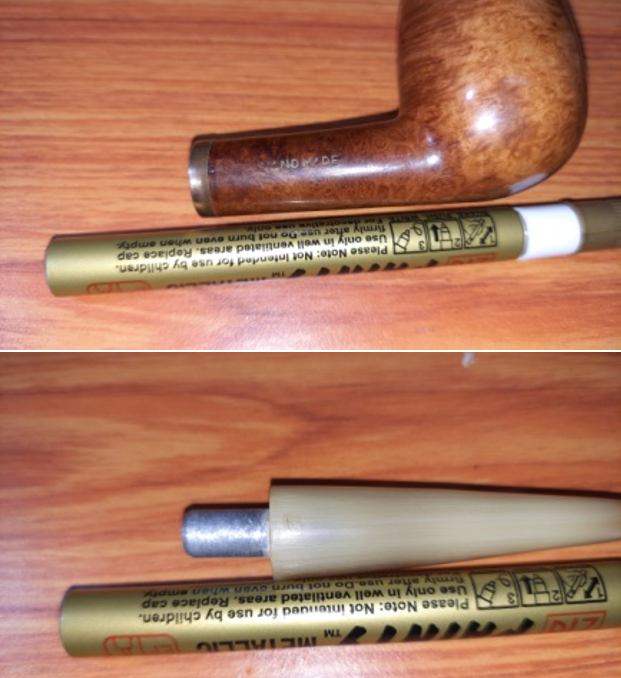I touched up the light spots on the bowl sides and on the joint of the shank and the bowl with a Mahogany stain pen. The colour matched perfectly. Once it had cured I would polish it and blend it further.