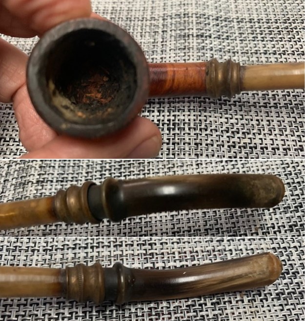 Greetings from Kamloops… hope you had a great holiday season. A while back, I picked up a KBB Palmyra on EBay (pictures attached) and I was looking into having it restored. It’s a cool little pipe with a horn stem… I think it’s 1920s era? I don’t mind fixing up estates now and again, but I’d like this one to be restored by someone with a little more know-how than me. It basically needs a thorough cleaning, minor repairs, and a repair to the hinge of the wind cap. Would you be interested in restoring it? And do you know what it might cost, offhand?