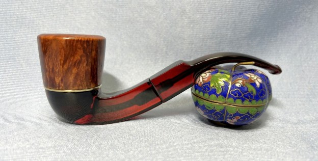 All done! This no-name Redmanol bent Dublin pipe looks fantastic again and is ready to be enjoyed by my friend in Seattle. It was a pleasure to work on. It’s a gorgeous pipe. The approximate dimensions of the pipe are as follows: length 5¼ in. (134 mm); height 1⅞ in. (48 mm); bowl diameter 1⅜ in. (35 mm); chamber diameter ¾ in. (20 mm). The weight of the pipe is 1⅝ oz. (47 g). I hope you enjoyed reading the story of this pipe’s restoration as much as I enjoyed restoring it. If you are interested in more of my work, please follow me here on Steve’s website or send me an email at kenneth@knightsofthepipe.com. Thank you very much for reading and, as always, I welcome and encourage your comments.